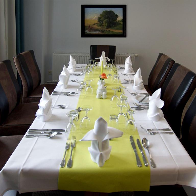 In unserem Salon bieten wir für Gäste unseres Hauses, aber auch für Tagesgäste, unser Frühstücksbuffet an, so dass Sie gut gestärkt Ihren Tag beginnen können. Wir bitten hier um Voranmeldung. Ob zur Mittags-, Kaffee- oder Abendzeit – zu verschiedensten Anlässen, Geburtstag, Seminar, Treffen mit Freunden – mit bis zu 30 Personen können Sie hier Ihren Aufenthalt genießen. Sprechen Sie uns gern bezüglich Ihrer Vorstellungen und Wünsche an.