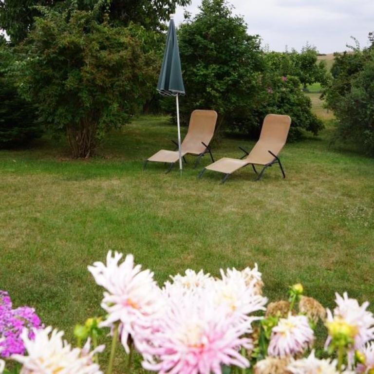 Es erwartet Sie eine komfortable Ferienwohnung mit großem Wohnzimmer, SAT- TV und Musikanlage. Bis zu 4 Personen finden in den beiden Schlafzimmern Platz. Die geräumige Küche ist ausgestattet mit Kühlschrank, Backofen, Mikrowelle und einem großen Essbereich. Für romantische Sommerabende steht Ihnen neben unserer Liegewiese, dem Pool und dem Pavillon eine Terrasse zur Verfügung. Gegen eine geringe Ausleihgebühr von 3,00 €/ Tag halten wir 2 Fahrräder für Sie bereit.