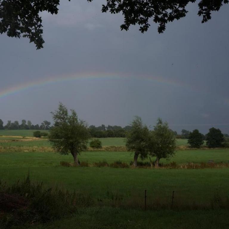 Die voll ausgestattete Küche mit Essplatz ist bestens zur Selbstversorgung geeignet. Der Außensitzplatz mit Sitzgarnitur, Liege, Feuerschale und Grillmöglichkeit lädt zur Entspannung und zum Beobachten des Milans oder des Storches ein.