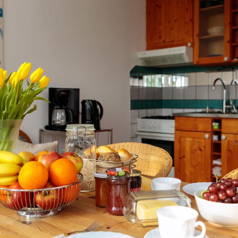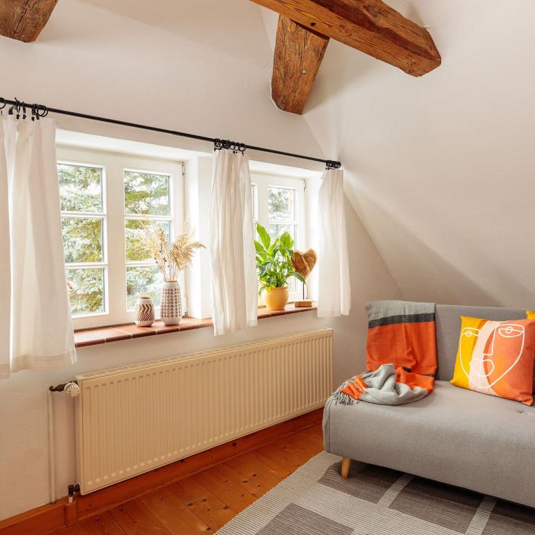 Die naturnahe Ausstattung der Ferienwohnung, eine Terrasse mit Grill zum Verweilen sowie ein großer Garten mit Erdsauna garantieren einen traumhaften und entspannten Urlaub zu Zweit. Auf Anfrage und nach Verfügbarkeit können Sie auch unsere 5 Fahrräder (3x für Erwachsene, 2x für Kinder) nutzen.