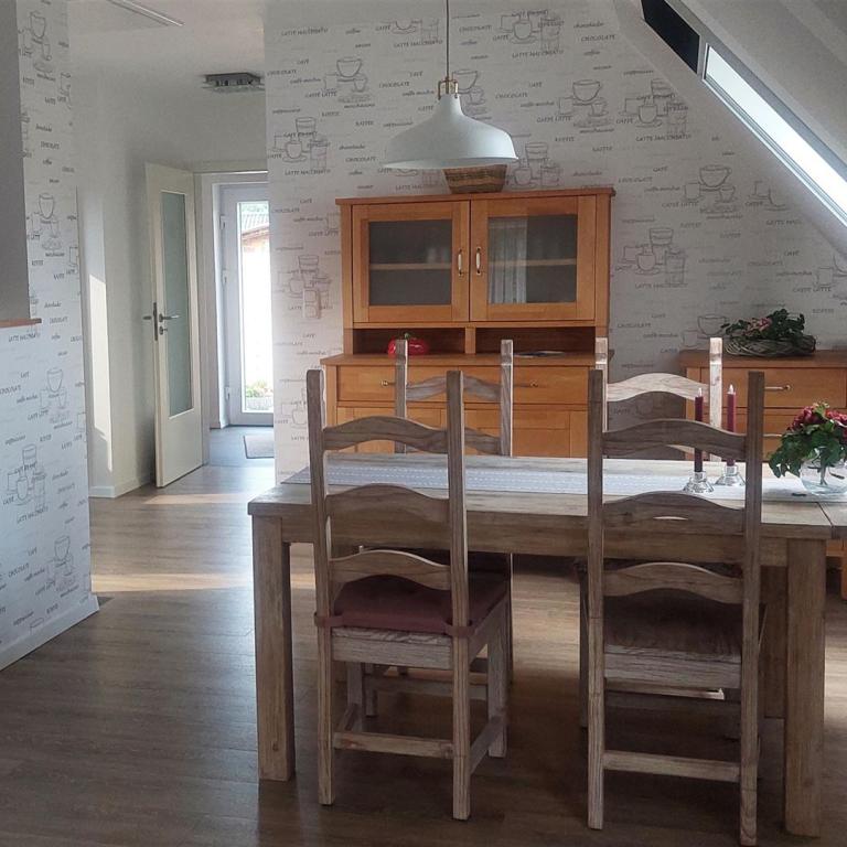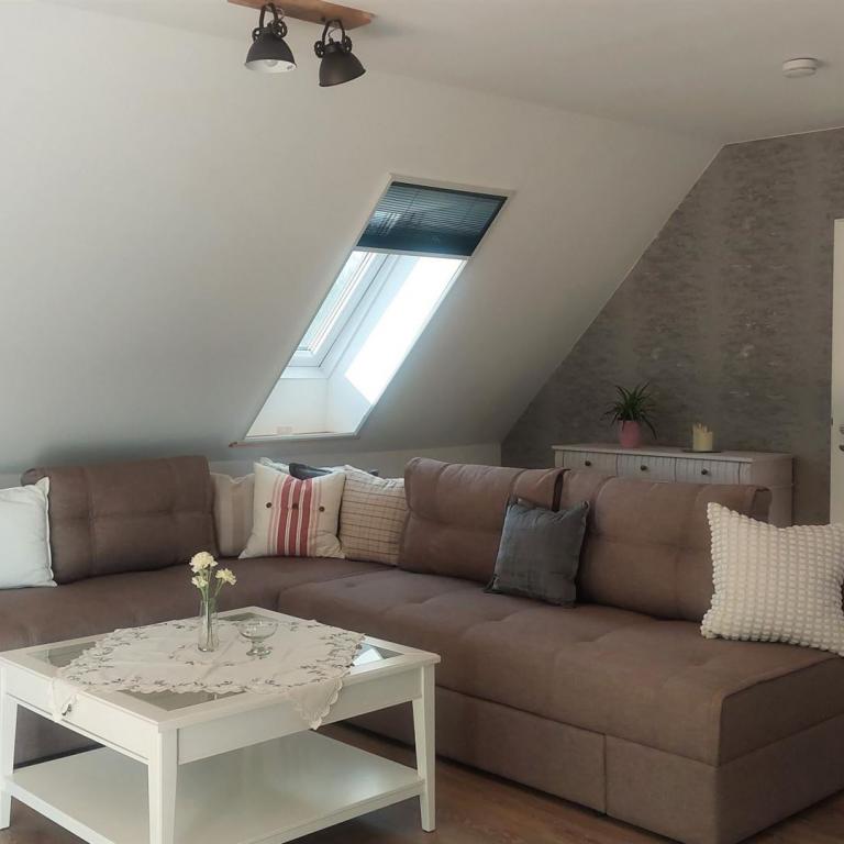 befindet sich unsere 2023 sanierte Ferienwohnung im Dachgeschoss unseres Einfamilienhauses.