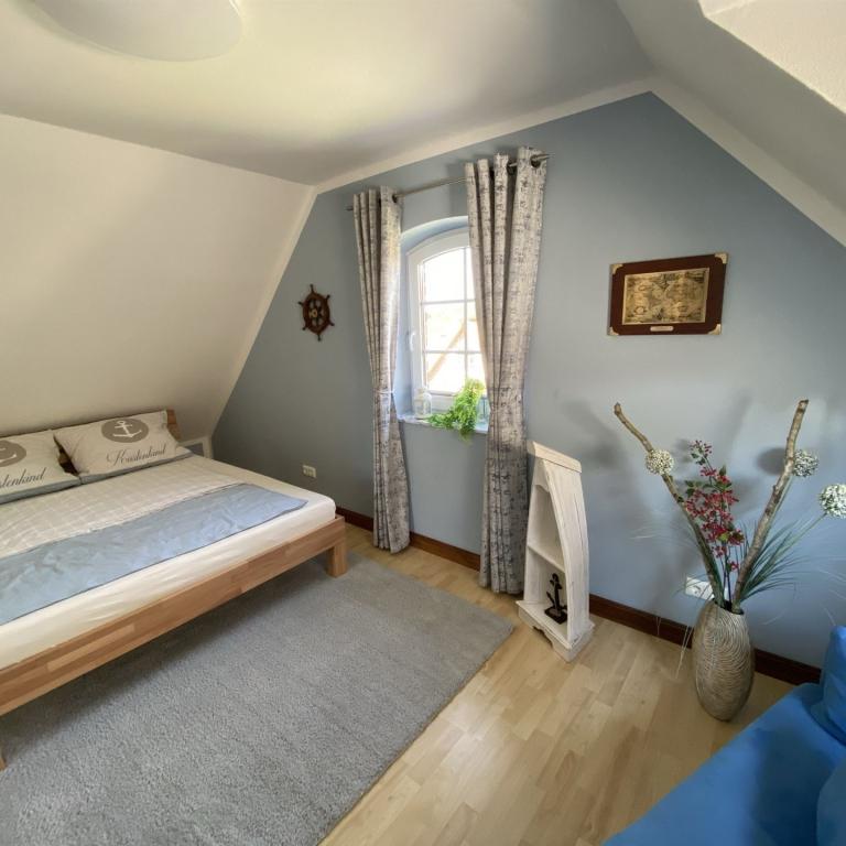 In unserem liebevoll eingerichteten Häuschen können bis zu 6 Personen, aufgeteilt in drei Zimmern, schlafen!