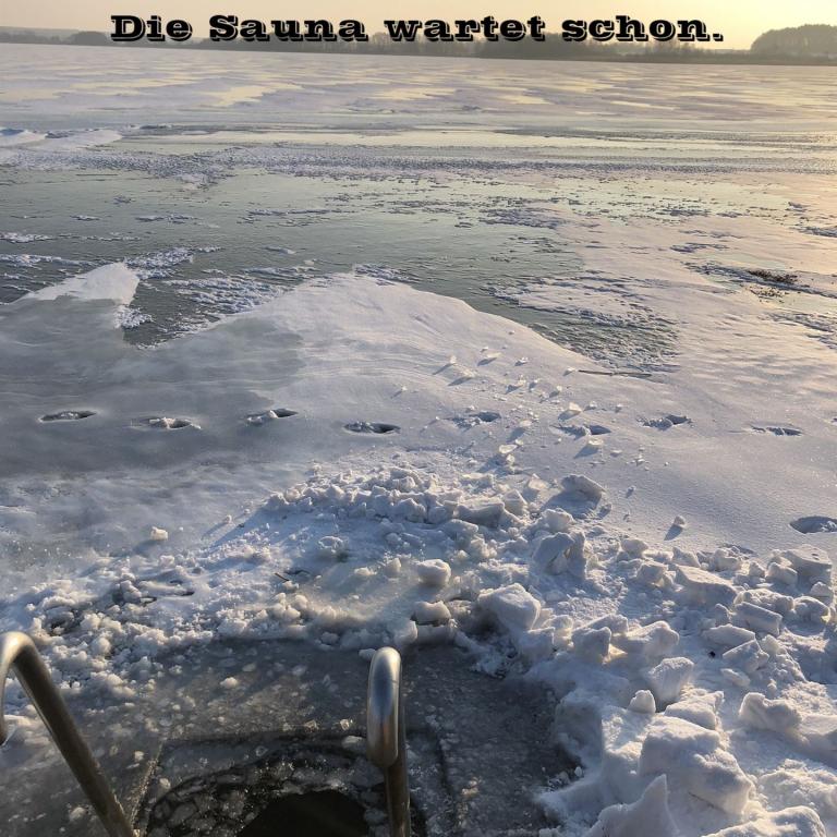 Das Ferienhaus ist auch im Winter buchbar- die Sauna wartet dann schon.