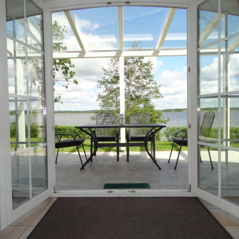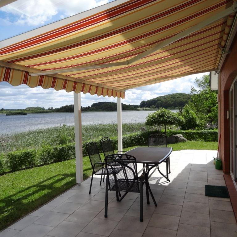 Die dem See zugewandte Terrasse hat seit Mai 2012 eine Überdachung mit Markise,