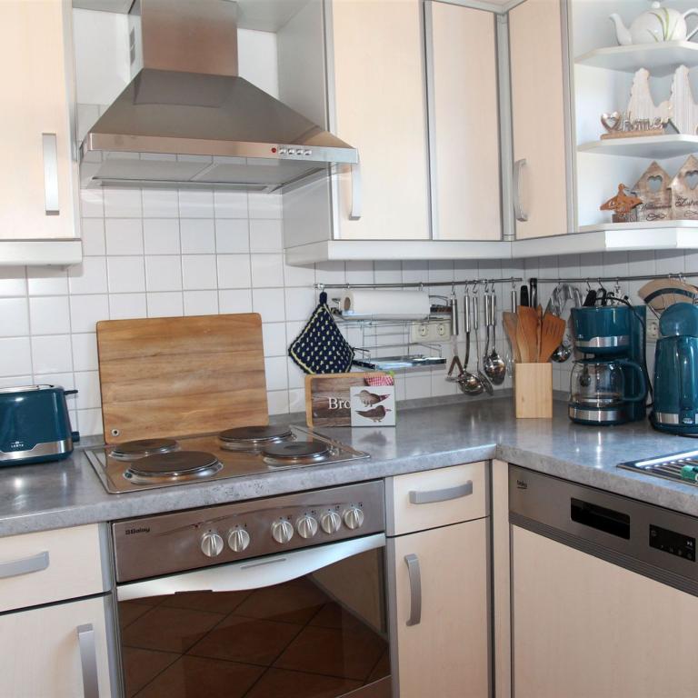 Die Küche ist komplett ausgestattet.