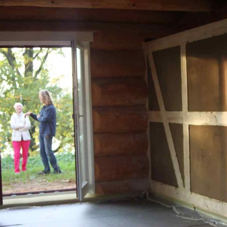 Die Fußbodenheizung und besonders der Lehmofen sorgen an kälteren Tagen für eine gemütliche Atmosphäre und unterstützen das besondere Klima in dem Naturstammhaus.