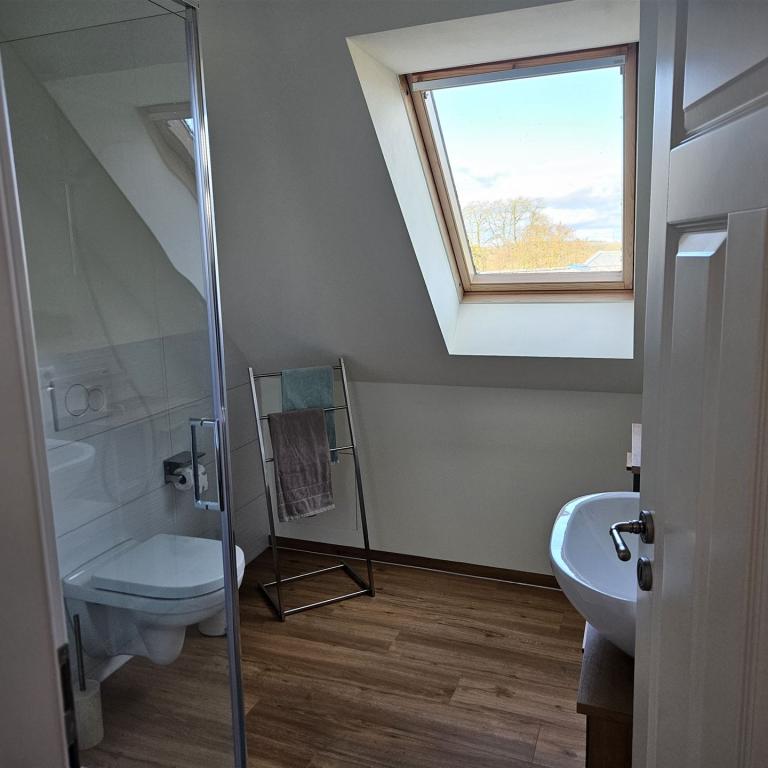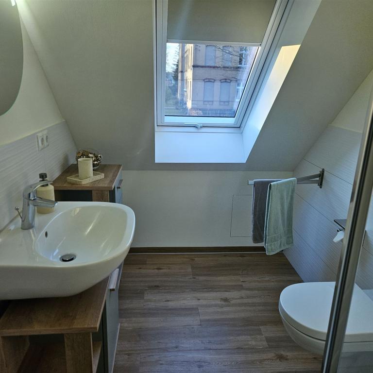 Die Wohnungen befinden sich in der oberen Etage des Hauses und sind ca. 46 m² groß.