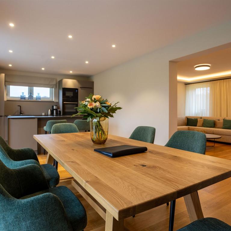 In den Ferienwohnungen haben Sie die Wahl: selbst den Kochlöffel schwingen oder sich auf Anfrage von einem Private Chef verwöhnen lassen. Er stellt ein Menü ganz nach Ihren Wünschen zusammen – gerne auch mit Wildfleisch aus der gutseigenen Jagd.