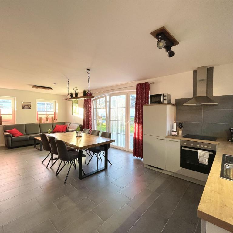 Das schöne, neue Ferienhaus aus dem Jahr 2021 ist für 6 bis 8 Personen ausgestattet. Auf seinen 100 qm ist es modern und komfortabel eingerichtet und liegt in einer ruhigen Sackgasse in direkter Nähe zum Großen Wariner See. Bis zum See und zum kostenfreien Strandbad sind es nur wenige Schritte. Das Nichtraucher-Haus ist mit Fliesen und Vinyl-Parkettboden ausgestattet und verfügt über eine Fußbodenheizung sowie einen Kaminofen.
