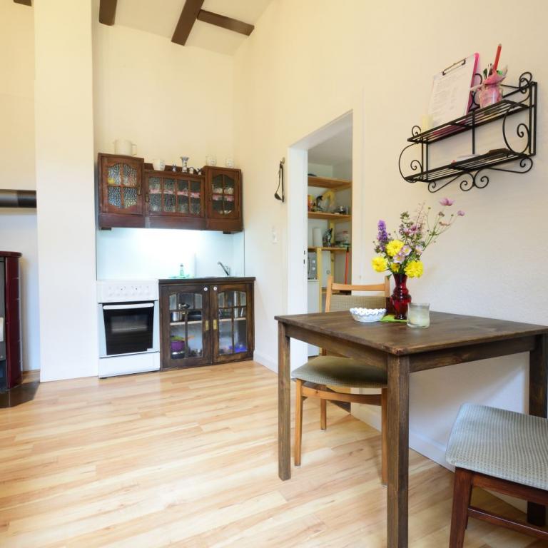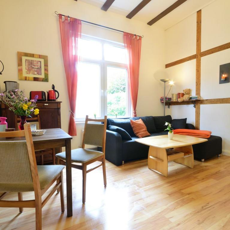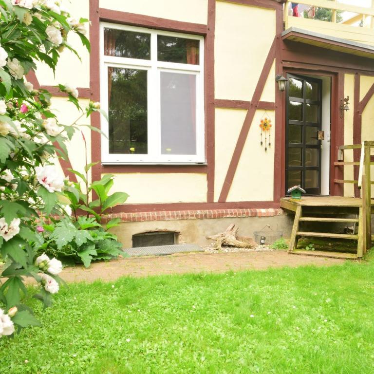 Die Ferienwohnung befindet sich in absolut ruhiger Lage, mitten im Waldgebiet des Naturparks Sternberger Seenland. Vor dem Haus befindet sich eine große möblierte Terrasse. Das Grundstück ist eingezäunt und für die Kinder steht eine Sandkiste zur Verfügung. Die Wohnung bietet auf 50 m² ausreichend Platz für bis zu 5 Personen + Kleinkind + Hund. Das Wohnzimmer ist mit einem Kaminofen, Sat-TV, Schlafsofa (1,80 m breit), Esstisch, einer voll ausgestatteten Küchenzeile ausgestattet. Das Schlafzimmer besitzt ein massives Doppelbett (1,80 m breit) und ein Doppelstockbett (auch für Erwachsene geeignet). Im Bad befindet sich eine Badewanne, Waschmaschine, ein WC und Waschbecken. Für wohlige Wärme im Bad sorgt eine Fußbodenheizung. Ein Kinderreisebett, Kinderhochstuhl und WLAN sind kostenfrei. Sie können direkt vom Eigentümer Fahrräder und ein Ruderboot mieten.