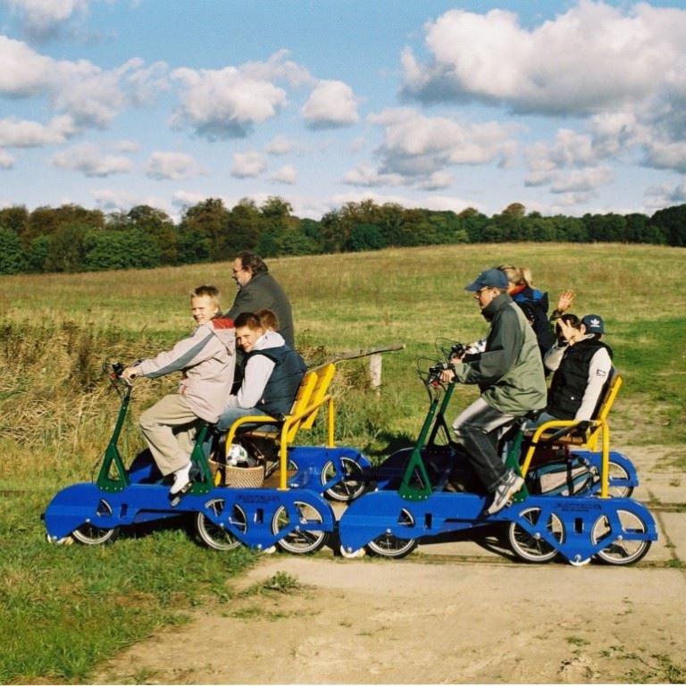 Die besonders leisen gummibereiften Alu-Fahrraddraisinen (Gewicht/Draisine 80kg) bieten Platz für zwei bis vier Personen und eignen sich zum Familienausflug genauso gut wie für Firmen- und Vereinsausflüge sowie Klassenfahrten.
