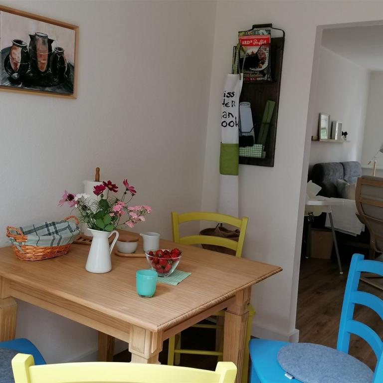 Unsere 74 m² große Ferienwohnung ist seit Juni 2020 zu buchen. Die neu ausgestattete Nichtraucherwohnung befindet sich in der ersten Etage. Die Schlaf- und Wohnräume verfügen über Insekten und Sonnenschutz. Ihr Schlafcomfort ist uns wichtig, Echtholzbetten mit hochwertigen Matratzen laden zum Ruhen ein.