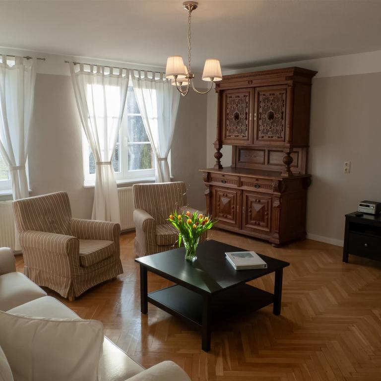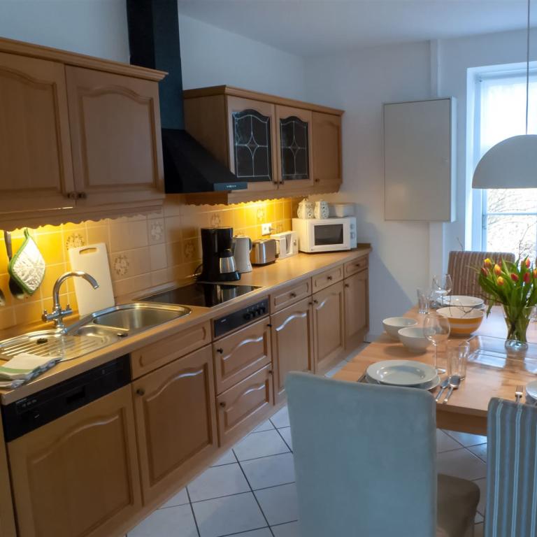 Die ca. 100 qm großen Ferienwohnungen liegen im Erdgeschoss des Hauses und sind für 4 bis max. 6 Personen (vier Erwachsene und zwei Kleinkinder) eingerichtet. Beide Wohnungen sind durch separate Eingänge zu erreichen und natürlich mit W- LAN und SAT-TV ausgestattet. Parkmöglichkeiten gibt es direkt vor dem Haus.