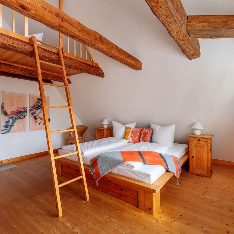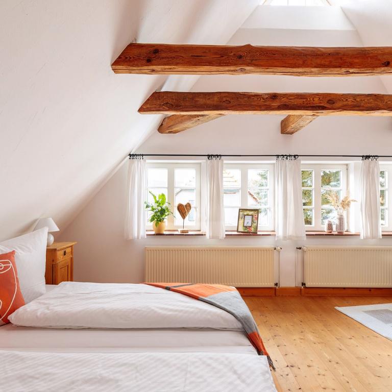 Die naturnahe Ausstattung der Ferienwohnung, eine Terrasse mit Grill zum Verweilen sowie ein großer Garten mit Erdsauna garantieren einen traumhaften und entspannten Urlaub zu Zweit. Auf Anfrage und nach Verfügbarkeit können Sie auch unsere 5 Fahrräder (3x für Erwachsene, 2x für Kinder) nutzen.