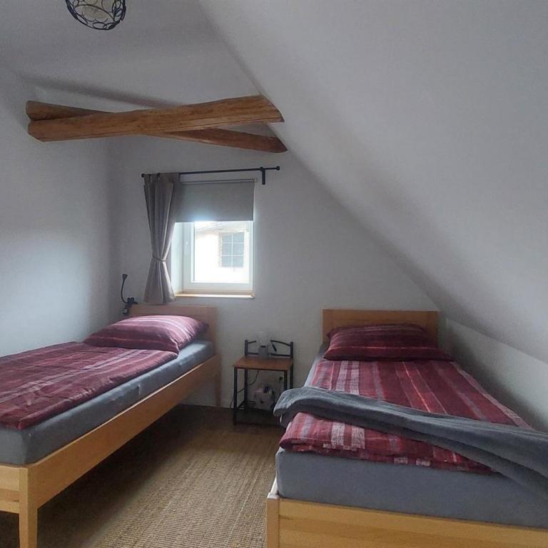 befindet sich unsere 2023 sanierte Ferienwohnung im Dachgeschoss unseres Einfamilienhauses.