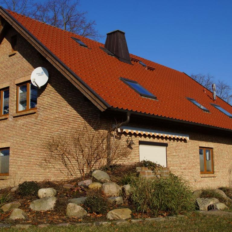 Unsere große Ferienwohnung liegt in einem ruhigen Dorf, umgeben von hügeligem Weideland und unmittelbar am Naturerbewald Kaarzer Holz. Schöne Badeseen erreichen Sie bequem zu Fuß oder mit dem Rad.