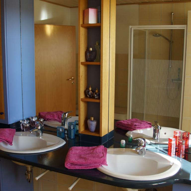 Wir haben die Wohnung modern, hochwertig und mit allem Komfort ausgestattet: Drei Schlafzimmer für je 2 Personen mit TV, Wannen- und Duschbad, Waschmaschine und Trockner. Auch die offene Küche lässt keine Wünsche offen.