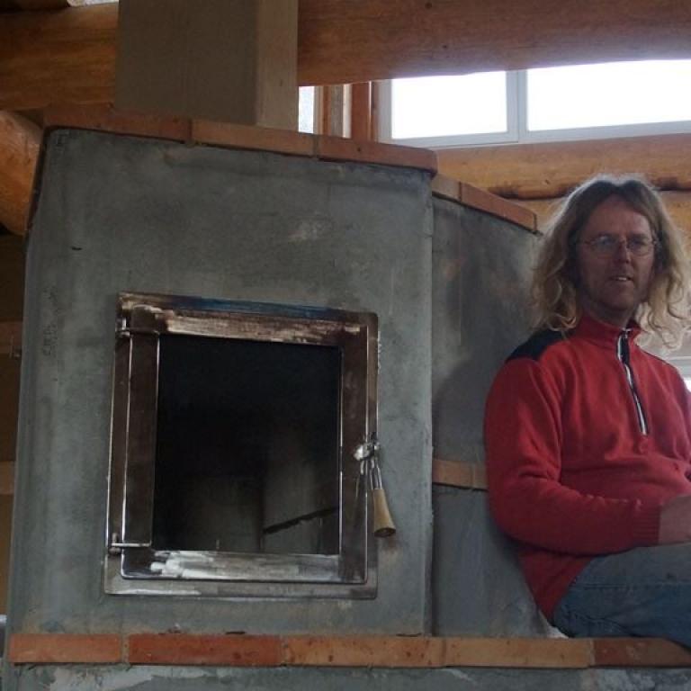 Die Fußbodenheizung und besonders der Lehmofen sorgen an kälteren Tagen für eine gemütliche Atmosphäre und unterstützen das besondere Klima in dem Naturstammhaus.