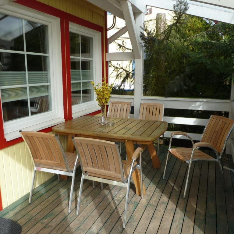 Eine überdachte Terrasse (Veranda) mit Gartenmöbeln befindet sich vor dem Haus. Auch die Terrasse mit Gartenmöbeln und Grill hinterm Haus lädt zum Entspannen ein. Internet / W-LAN ist vorhanden.