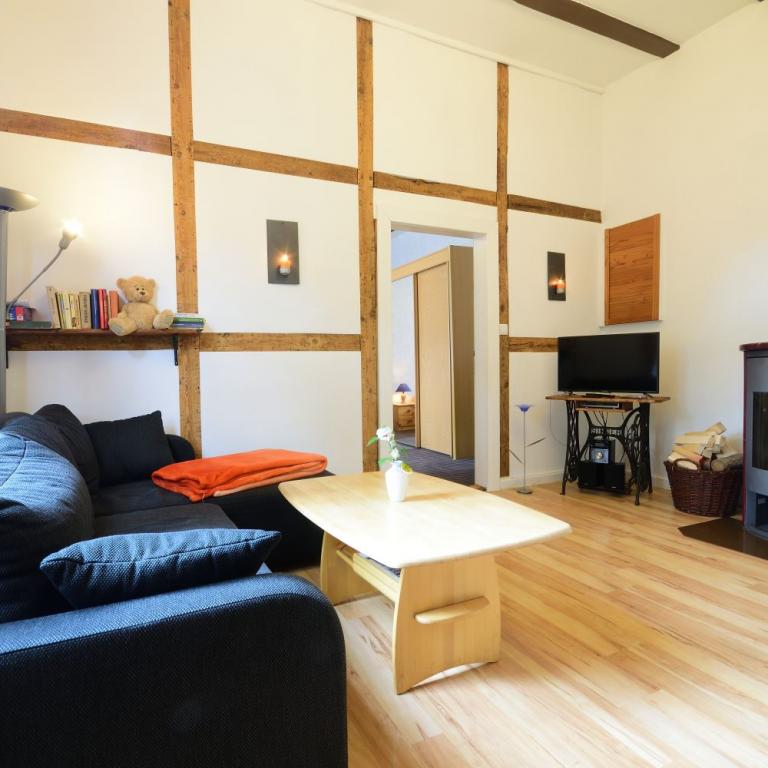 Die Ferienwohnung befindet sich in absolut ruhiger Lage, mitten im Waldgebiet des Naturparks Sternberger Seenland. Vor dem Haus befindet sich eine große möblierte Terrasse. Das Grundstück ist eingezäunt und für die Kinder steht eine Sandkiste zur Verfügung. Die Wohnung bietet auf 50 m² ausreichend Platz für bis zu 5 Personen + Kleinkind + Hund. Das Wohnzimmer ist mit einem Kaminofen, Sat-TV, Schlafsofa (1,80 m breit), Esstisch, einer voll ausgestatteten Küchenzeile ausgestattet. Das Schlafzimmer besitzt ein massives Doppelbett (1,80 m breit) und ein Doppelstockbett (auch für Erwachsene geeignet). Im Bad befindet sich eine Badewanne, Waschmaschine, ein WC und Waschbecken. Für wohlige Wärme im Bad sorgt eine Fußbodenheizung. Ein Kinderreisebett, Kinderhochstuhl und WLAN sind kostenfrei. Sie können direkt vom Eigentümer Fahrräder und ein Ruderboot mieten.