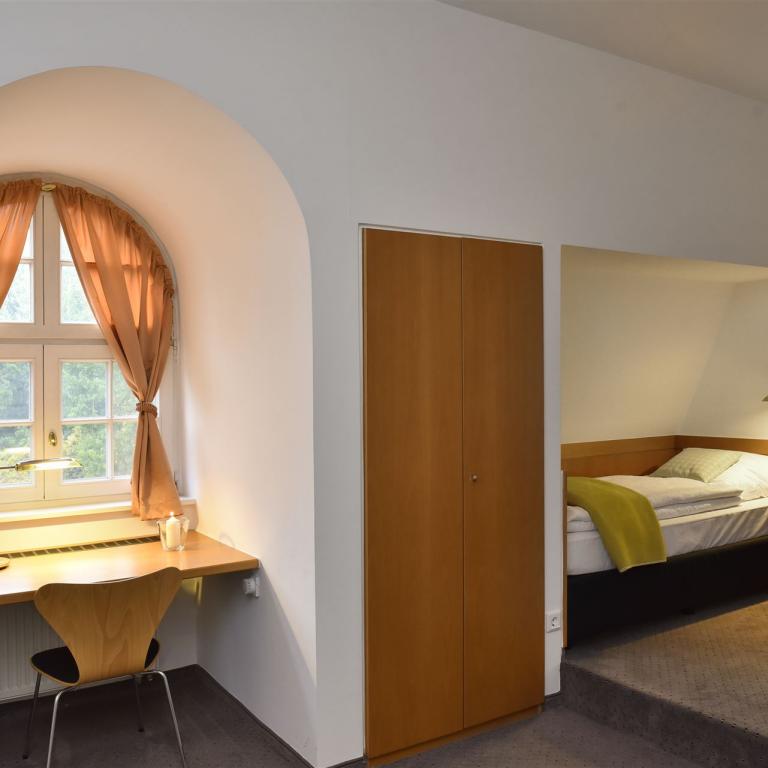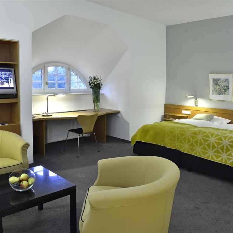 Unser Hotel verfügt über insgesamt 52 Gästezimmer, davon 15 neu renovierte und sanierte Schlosszimmer (13 DZ, 2 EZ) und bietet Ihnen damit ein familiäres Ambiente. Alle 18 Doppel und Einzelzimmer im Schloss und die 32 Zimmer im anliegenden Gästehaus sind komfortabel und größtenteils modern ausgestattet. Unsere vier Appartementzimmer im Marstall sind stilvoll und mit einer Küchenzeile eingerichtet, zwei davon behindertengerecht. Wer das Flair vergangener Zeiten genießen möchte, findet in unserer Schlosssuite mit ihrem historischen Marmorbad das passende Ambiente.
